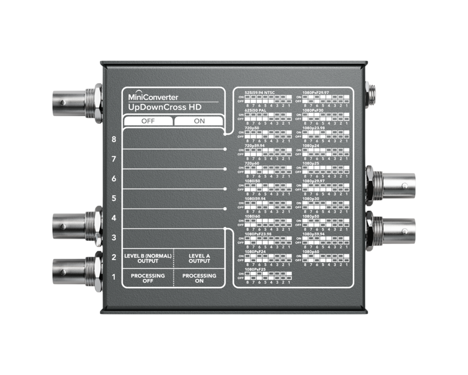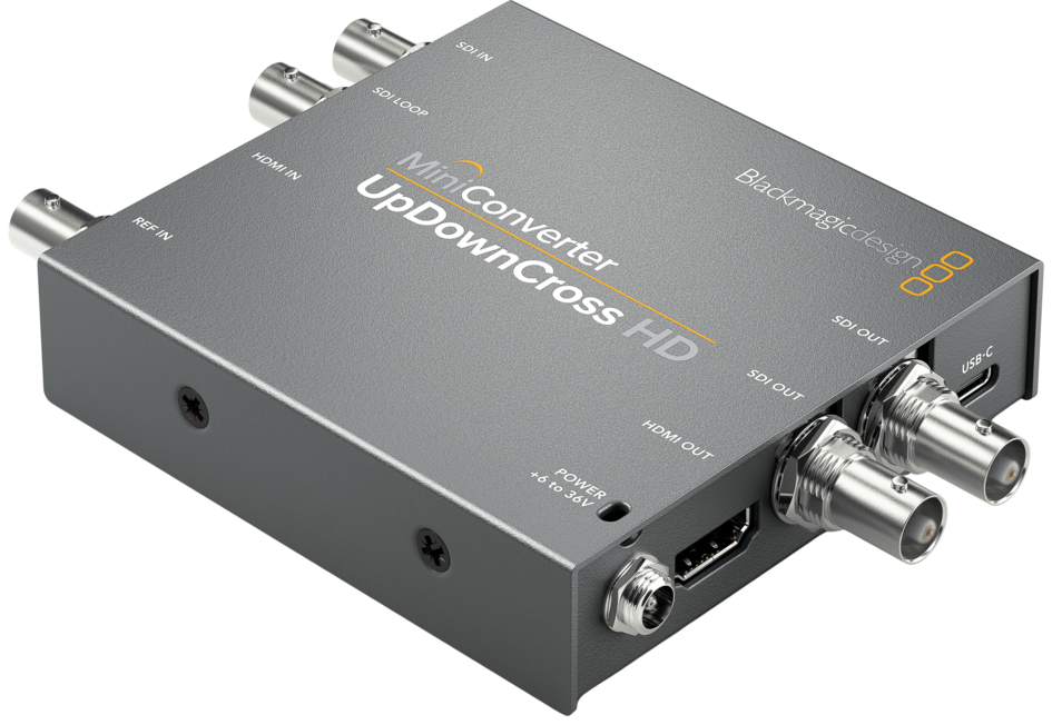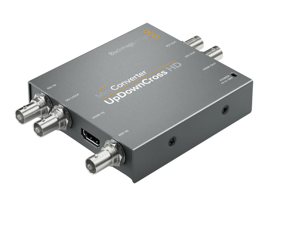 Mini Converter UpDownCross HD is a full standards converter that lets you convert any SD or HD video format to any other SD or HD video format using high quality Teranex algorithms! Simply set the output format you need and the input format is automatically converted, protecting your equipment from receiving an incorrect signal. It’s also perfect for connecting HDMI computers to SDI projectors because it scales the computer’s video to the broadcast television output standard that you choose. Mini Converter UpDownCross HD features multi rate 3G-SDI connections for working in all formats up to 1080p60 including Level A and B devices plus computer resolution scaling via HDMI in. You also get an HDMI input, reference in, audio delay for perfect AV sync, timecode conversion and both 3G-SDI and HDMI inputs and outputs allowing you to connect to virtually anything!